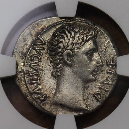 Emperor Augustus Ancient Roman Silver Denarius Coin, 15 BC, NGC Choice XF