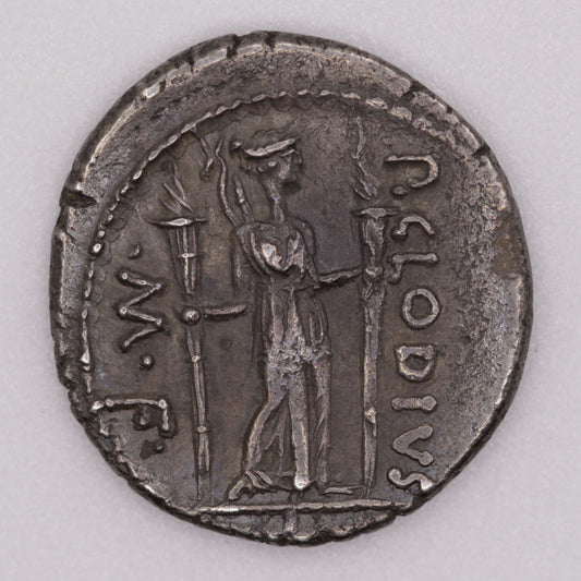 Clodius Roman Republic Silver Denarius | Apollo Portrait | Toned
