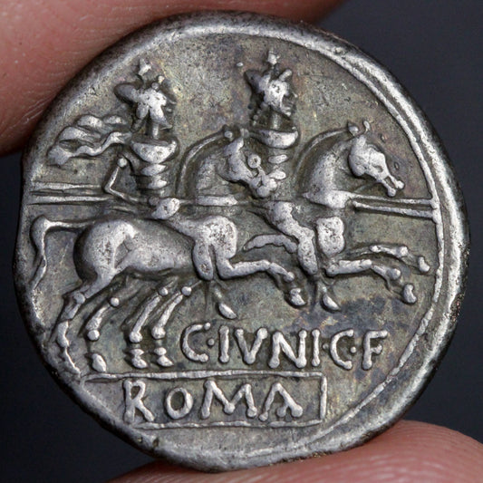 Roma Head Denarius Ancient Roman Republic Silver Coin 149BC C Iunius RRC 210/1