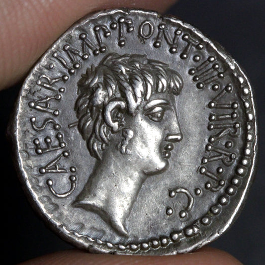 Mark Antony + Octavian Denarius Ancient Roman Republic Silver Coin 41BC RRC 517/2