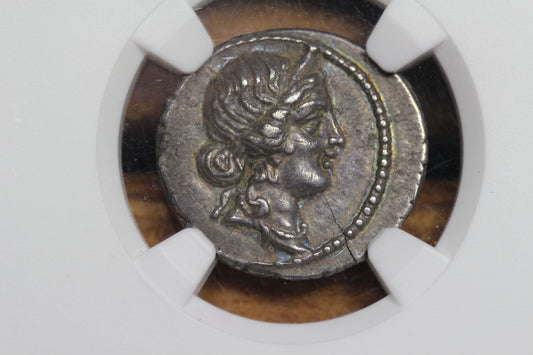 Julius Caesar Ancient Roman Denarius, 48-46 BC, NGC AU, Aeneas Venus